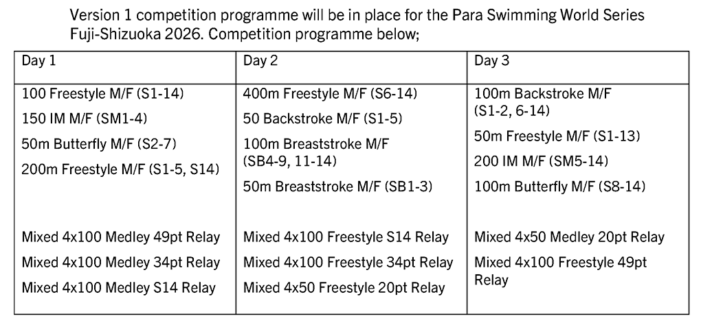 Para SwimmingWorld Series Fuji-Shizuoka 2026May 29 to 31Greeting from the Governor of Shizuoka PrefectureWelcome to Shiz...